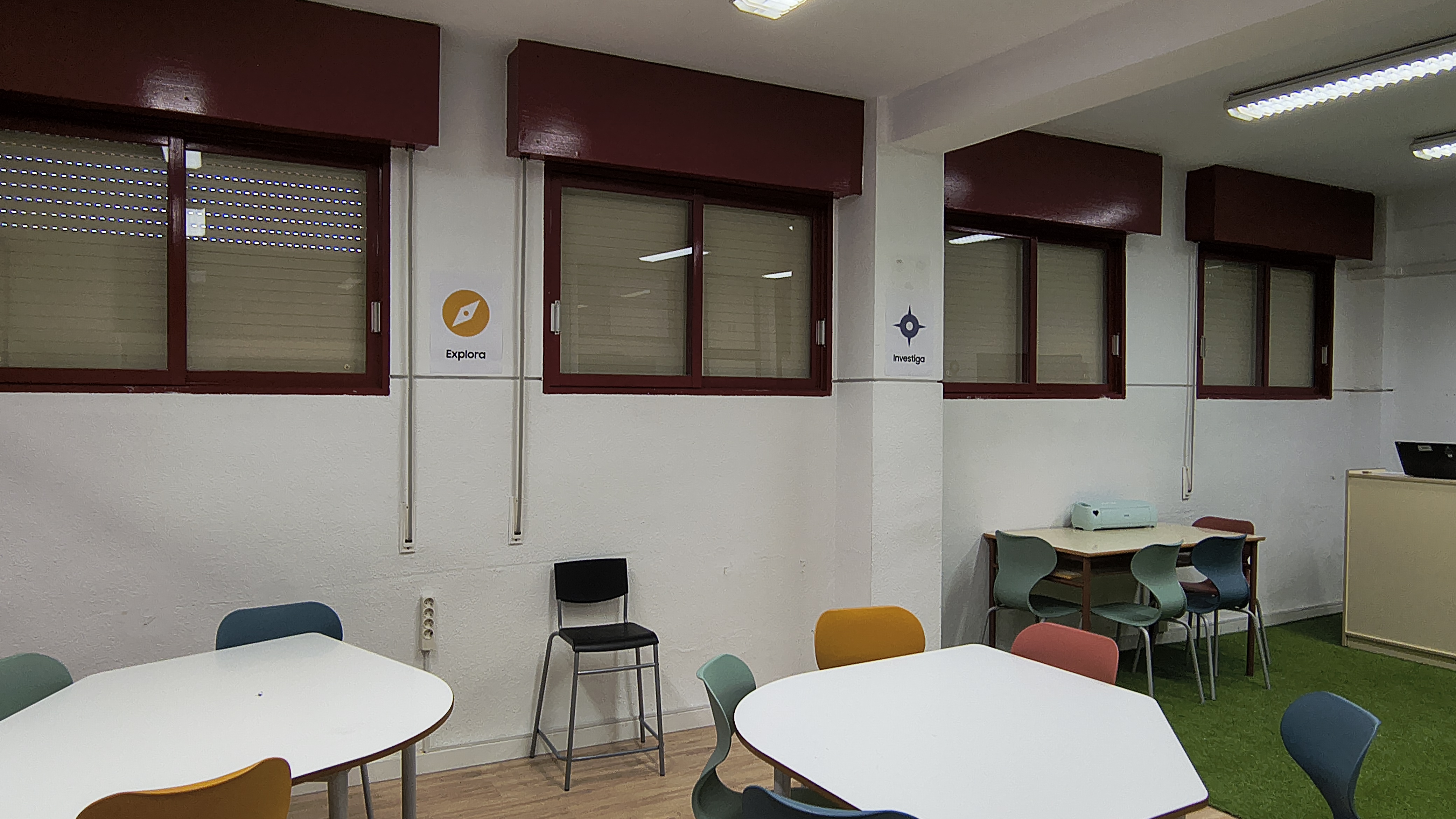 En este entorno flexible se desarrollan actividades basadas en aprendizaje basado en proyectos, metodologías STEAM y trabajo cooperativo, donde el alumnado investiga, crea y presenta sus propios proyectos.